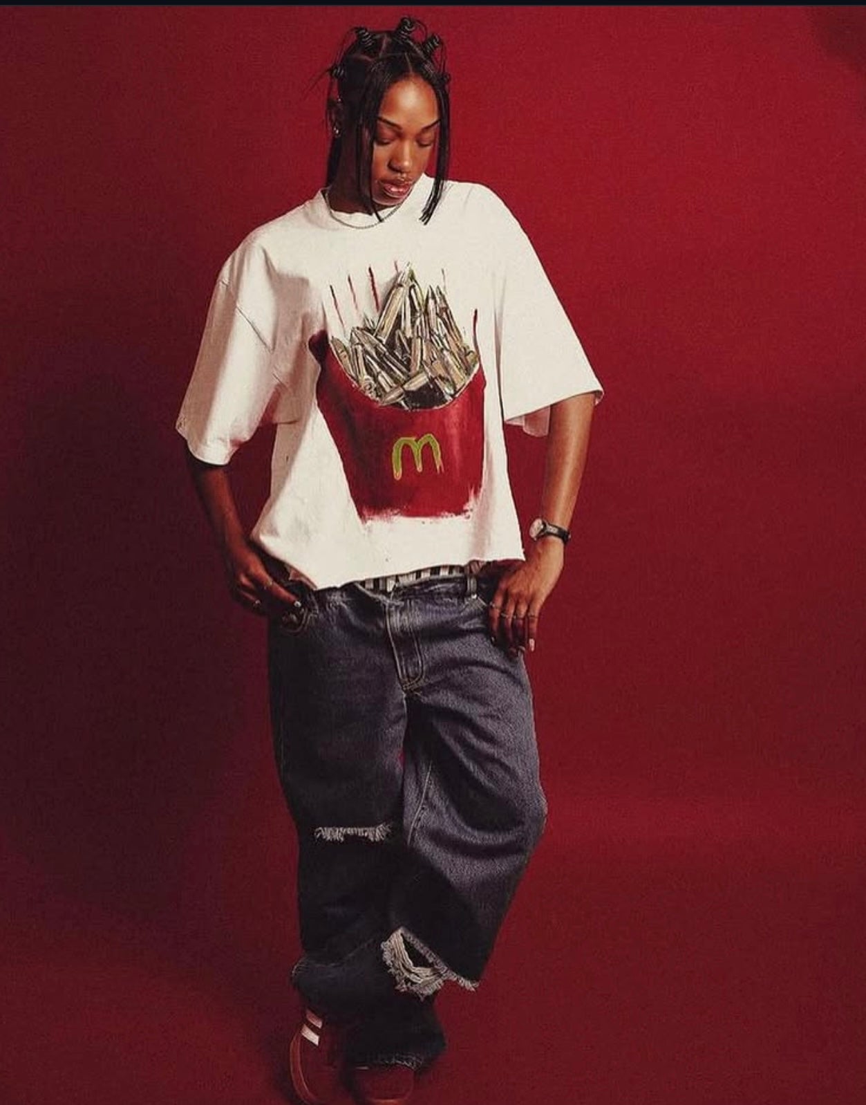 This tee features an intentionally oversized fit with dropped shoulders for a relaxed, streetwear-inspired look. If you prefer a true oversized style, order your regular size. For a more fitted look, we recommend sizing down.
